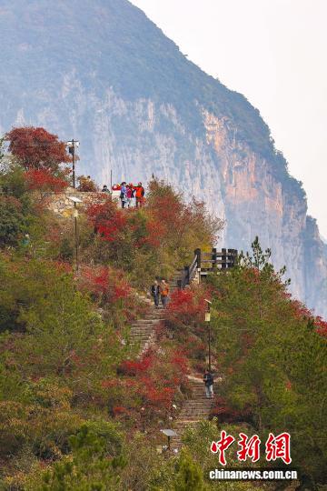 图为少江巫峡神女景区的白叶吸收搭客挨卡摄影。中新社记者 周毅 摄